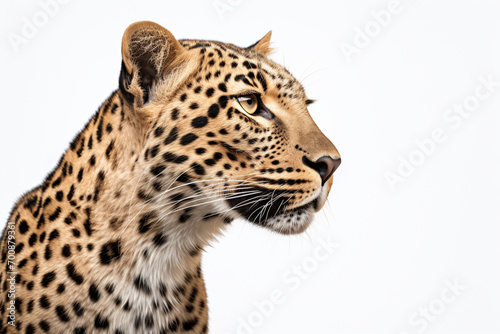 Obraz premium Leopard close-up portrait on a white background.