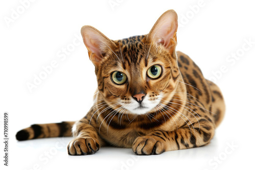 Obraz premium Leopard coloured cat on white background. Leopard cat