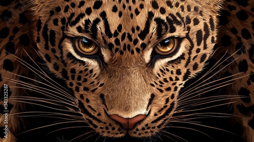 © Alpha, Naklejka premium leopard face close-up, danger concept, sharp eyes and whiskers, digital illustration, dark background, isolated on white background