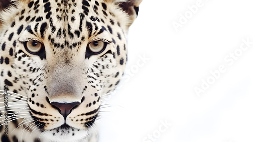 Obraz premium Leopard face macro close-up, isolated on white, copy space
