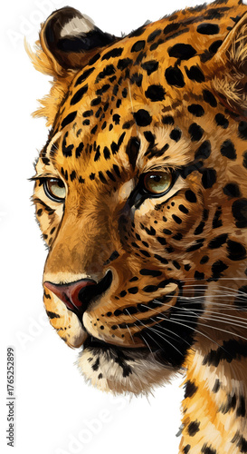 © Siasart Studio, Naklejka premium Leopard Face Realistic Illustration Warm Tones Soft Light