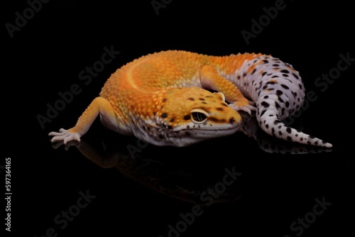 © wei, Fototapeta premium leopard gecko lizard,black background, eublepharis macularius