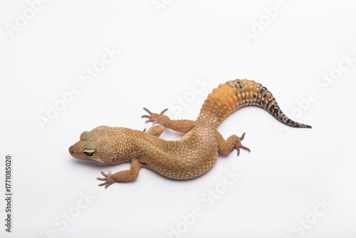 © dinvector, Naklejka premium Leopard gecko lizard isolated on white background, animal closeup