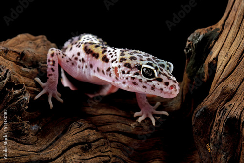 © Agus Gatam, Obraz premium leopard gecko lizard on wood , eublepharis macularius