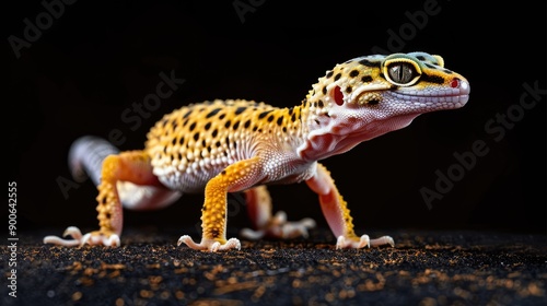 © Ariep, Naklejka premium Leopard Gecko on Black Background