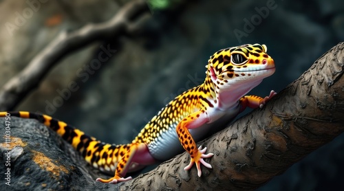 © edisetiawan.id, Obraz premium Leopard Gecko on Twigs: A Cinematic Nature Portrait