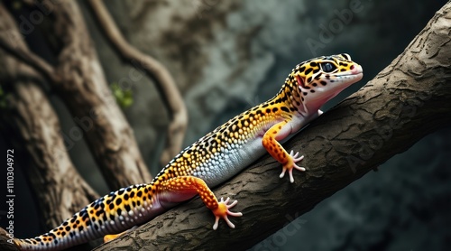 © edisetiawan.id, Obraz premium Leopard Gecko on Twigs: A Cinematic Nature Portrait