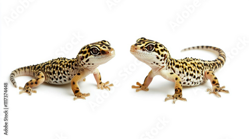 Naklejka premium Leopard geckos facing each other on white background