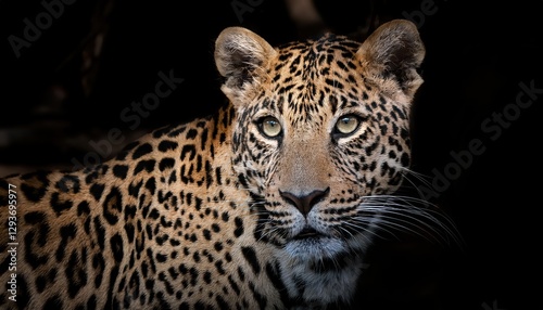 Obraz premium Leopard Hiding in Shadows Majestic Predator Camouflaged Amidst Forest Dappled...