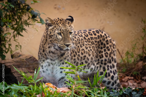 © Adalbert, Fototapeta premium Leopard hining behind the bush