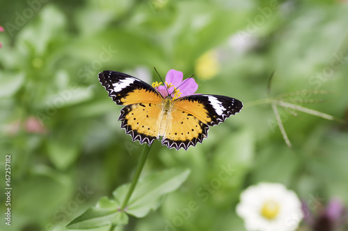 Naklejka premium Leopard Lacewing butterfly are sucking nectar from pollen