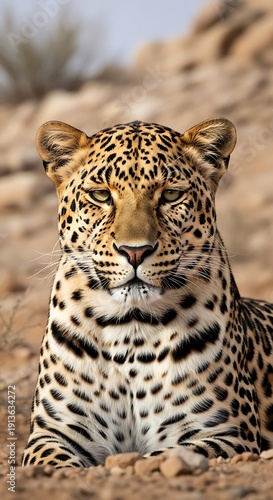 © Supri, Fototapeta premium Leopard lying on rocky terrain outdoors.