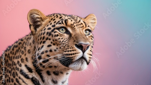 © Arceli, Obraz premium leopard on bright pastel color background from Generative AI