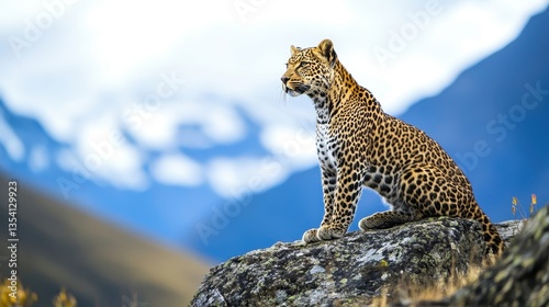 © arisa, Obraz premium leopard on mountain rock