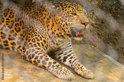 Fototapeta premium leopard or Panthera pardus at Arignar Anna Zoological Park also known as the Vandalur Zoo, a zoological garden located in Vandalur, Chennai. It is affiliated with the Central Zoo Authority of India.