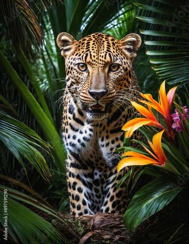 © Radical Designs, Naklejka premium Leopard portrait in a dark tropical forest