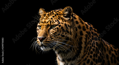 Fototapeta premium Leopard Portrait in Dark Background, Wildlife in Natural Habitat, Powerful...