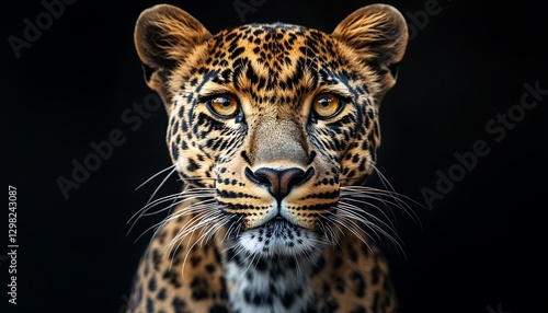Fototapeta premium Leopard portrait, night, wild, intense gaze