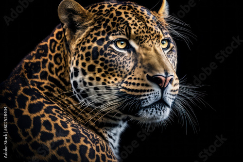 Obraz premium Leopard portrait on dark background. AI Generative