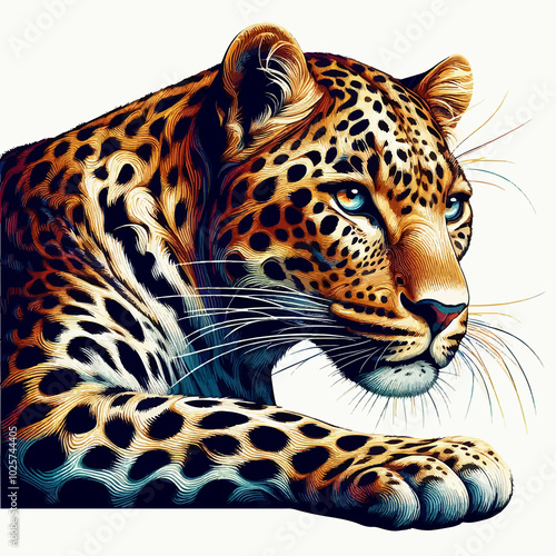 © Larry Offshore, Obraz premium Leopard Portrait on white Background Illustration social media avatar still life