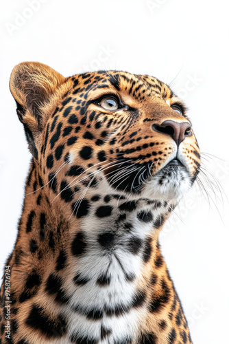 Obraz premium Leopard Portrait, Proud leopard gazing away from the camera, showcasing its beauty against a clean white background, ideal for wildlife photography