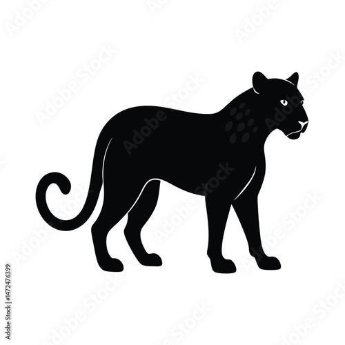© SanoarH, Obraz premium Leopard powerful feline predator in stealth pose silhouette vector image on white background