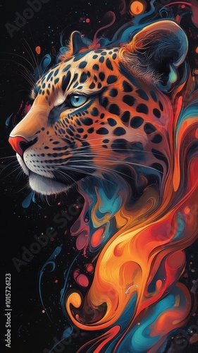 Fototapeta premium Leopard reimagined in Morphism style, its form transformed into smooth, abstract shapes with fluid lines and vibrant colors.