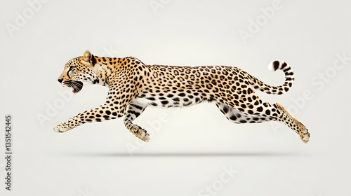 © ALFONSUS, Obraz premium Leopard running fast, isolated on white, wildlife action shot, for wildlife documentaries