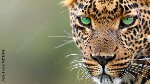 © Maestro, Fototapeta premium Leopard's intense green eyes close-up