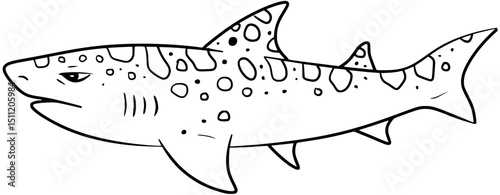Fototapeta premium Leopard Shark Vector Outline Line Art Drawing