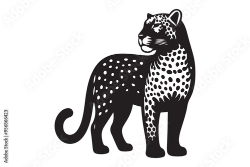 © Nasir, Fototapeta premium Leopard Silhouette Simple Black Vector Illustration