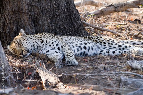 © franco lucato, Fototapeta premium leopard sleeping under the shade of a tree