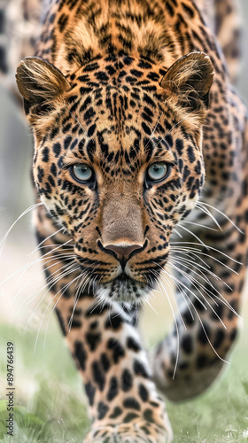 © Fxquadro, Obraz premium Leopard stalking its prey with intense gaze and posture