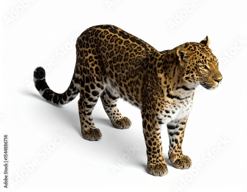 © itsara, Naklejka premium Leopard standing full body isolated on white background Its spotted coat is clearly visible