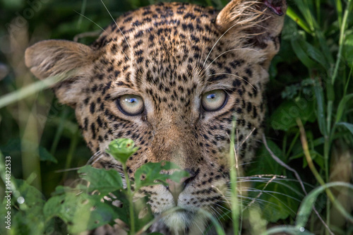© simoneemanphoto, Naklejka premium Leopard starring at the camera.