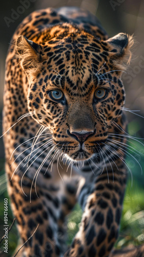 © Fxquadro, Fototapeta premium Leopard walking forward with intense gaze in focus