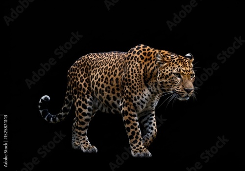 © Vooglo.com, Fototapeta premium Leopard walking isolated on black background