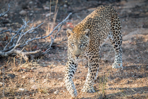 © simoneemanphoto, Obraz premium Leopard walking towards the camera.