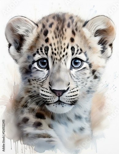 © Silvia Bogdanski, Obraz premium Leopard, weißer Hintergrund