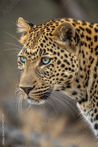 © Роман Заворотный, Naklejka premium Leopard With Striking Blue Eyes in Natural Habitat Generative AI