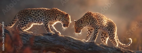 © illustratica, Obraz premium Leopards Facing Off on a Tree Branch
