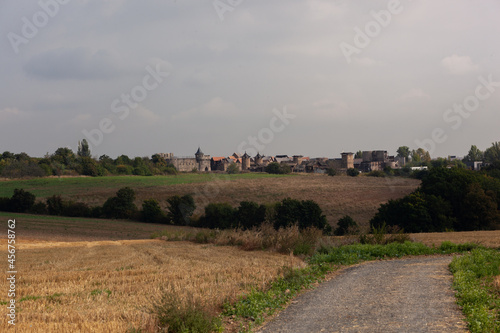 Fototapeta premium Les décors de films représentant un cité médiévale, avec devant un champ de blé.