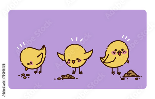 © Virak, Obraz premium Les 3 poussins mangent des graines