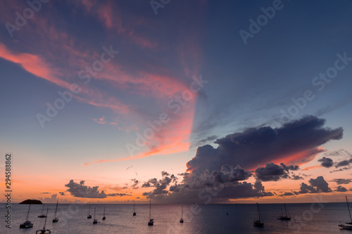 Obraz premium Les Trois-Ilets, Martinique, FWI - Sunset in Anse Mitan