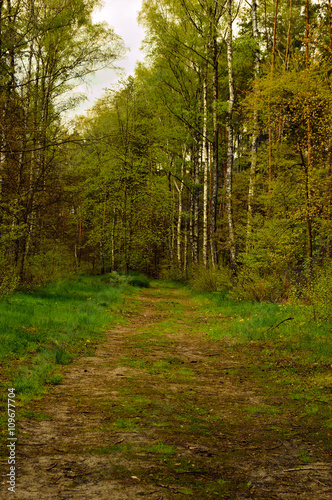 © W Korczewski, Fototapeta premium Leśna droga w środku lasu prowadzi w nieznane