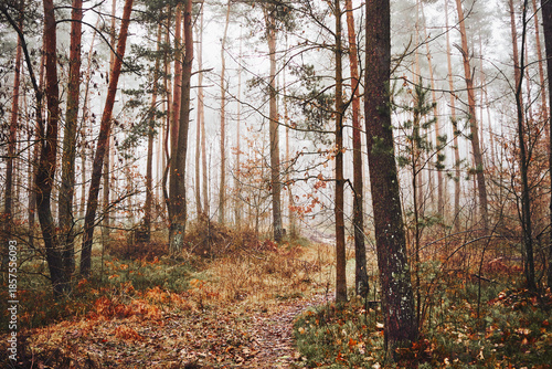 © Marcin Łazarczyk, Fototapeta premium leśna ścieżka,mgła