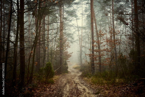 © Marcin Łazarczyk, Fototapeta premium leśna ścieżka,mgła
