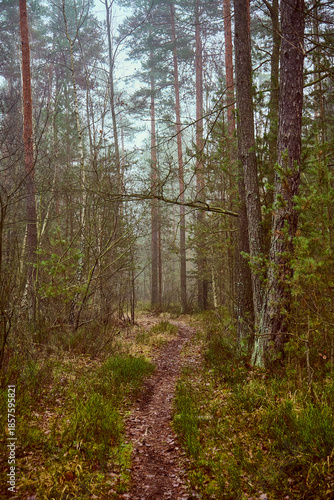 © Marcin Łazarczyk, Fototapeta premium leśna ścieżka,mgła