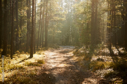 © Marcin Łazarczyk, Obraz premium leśna ścieżka we mgle