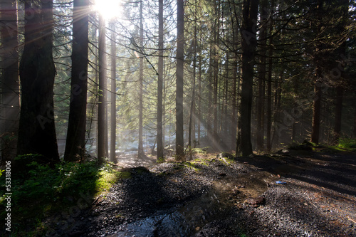Naklejka premium Leśne promienie słońca